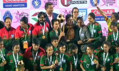 ঢাকা : সাফ অনূর্ধ্ব-১৯ চ্যাম্পিয়নশিপের ফাইনালে ভারতকে ১-০ গোলে হারিয়ে শিরোপা জিতলো বাংলাদেশ নারী অনূর্ধ্ব-১৯ দল। বুধবার (২২ ডিসেম্বর) মাঠে নামবে বাংলাদেশ ও ভারত।