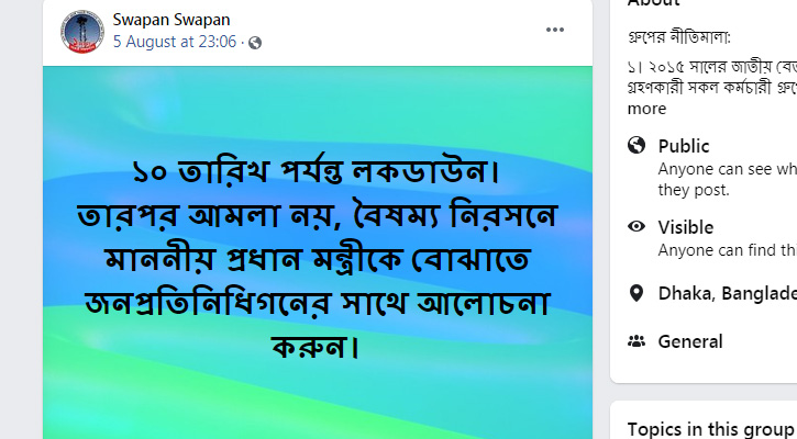 সামাজিক মাধ্যমে একজন লিখেছেন-‘আমলা নয়, বৈষম্য নিরসনে মাননীয় প্রধান মন্ত্রীকে বোঝাতে জনপ্রতিনিধিগনের সাথে আলোচনা করুন।’