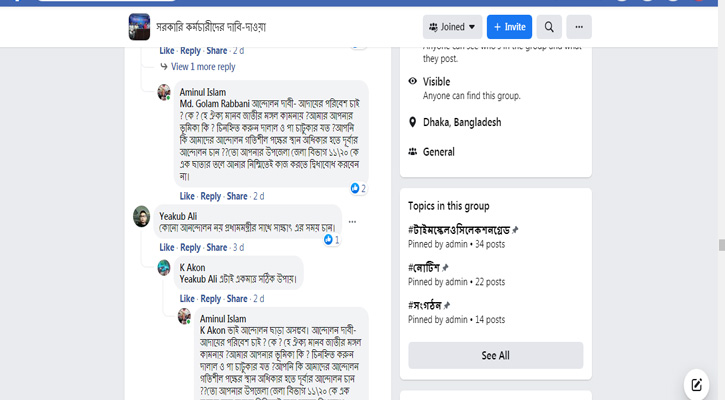 এমন পরিস্থিতিতে দাবি আদায়ে সরকারি কর্মচারী সংগঠনের নেতাদের প্রতি সামাজিক মাধ্যমে নানা রকম পরামর্শ দিচ্ছেন সাধারণ কর্মচারীগণ।