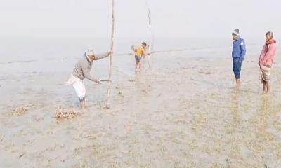 লালমোহনে ৫০ লাখ টাকার অবৈধ খুঁটি জাল ধ্বংস