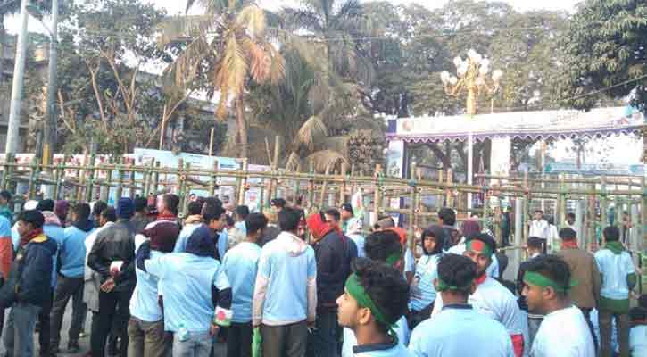 রাজশাহী এবং আশপাশের জেলাগুলো থেকে নেতাকর্মীরা মিছিল নিয়ে মাদ্রাসা মাঠে ঢুকছেন। নানা স্লোগানে তারা মুখর করে তুলছেন চারপাশ। সকাল ৯টার মধ্যে মাদ্রাসা মাঠের অর্ধেক মানুষে মানুষে পূর্ণ হয়ে গেছে। সকাল ৮টায় মাদ্রাসা মাঠ নেতাকর্মীদের জন্য খুলে দেওয়া হয়েছে।
