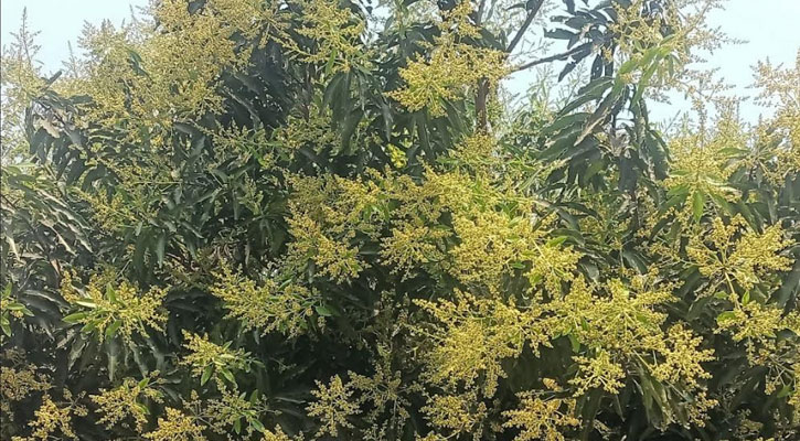 মুকুলে মুকুলে ছেঁয়ে আছে গাছের প্রতিটি ডালপালা। চারদিকে ছড়াচ্ছে সেই মুকুলের সুবাসিত পাগল করা ঘ্রাণ। তবে আমের ফলন নির্ভর করছে আবহাওয়ার ওপর।