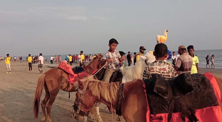 পটুয়াখালী: কেউ কেউ বাবাকে সহযোগিতা করতে, কেউবা আবার পরিবারের মুখে খাবার তুলে দিতে ঘোড়ার লাগাম ধরে, চায়ের ফ্লাস্ক হাতে নিয়ে বা ঝুড়িতে পান-সিগারেট নিয়ে সকাল থেকে রাত ১০টা পর্যন্ত কুয়াকাটা সৈকতে ঘুরছে ৮ থেকে ১৩ বছরের অর্ধ শতাধিক শিশু। সৈকতে কাউকে দেখলেই জিজ্ঞাসা করছে ঘোড়ায় উঠবেন, চা খাবেন, পান-সিগারেট লাগবে কি না। কেউ হ্যা বলছেন, কেউ আবার ফিরিয়ে দিচ্ছেন।