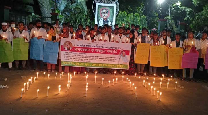 কুমিল্লা: চার দফা দাবি আদায়ে কুমিল্লায় ইন্টার্ন চিকিৎসক, জেলার বেসরকারি মেডিকেল আ্যাসিস্ট্যান্ট ট্রেনিং স্কুলের (ম্যাটস) শিক্ষার্থী ও সাধারণ ডিএমএফ শিক্ষার্থীরা মোমবাতি প্রজ্বলন কর্মসূচি পালন করেছেন।
