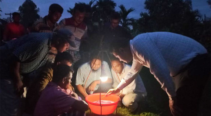 তাড়াশ: কীটনাশক ব্যবহার না করে ক্ষতিকারক পোকা মাকড়ের কবল থেকে রোপা আমন ফসল রক্ষায় শস্য ভান্ডার খ্যাত সিরাজগঞ্জের তাড়াশ উপজেলায় জনপ্রিয় হয়ে উঠছে আলোক ফাঁদ। বিশেষ করে এখন ফসলের ক্ষতি করে এমন কারেন্ট পোকা, মাজরা পোকা, গান্ধি পোকা ও চুঙ্গি পোকাসহ বাদামী ঘাস ফড়িং দমনে জমিতে আলোক ফাঁদ বা পার্চিং পদ্ধতি ব্যবহার বেড়েছে।