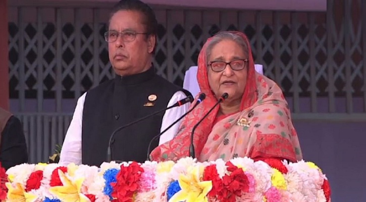 কালকিনিতে জনসভায় বক্তব্য দিচ্ছেন প্রধানমন্ত্রী শেখ হাসিনা। ছবি সংগৃহীত