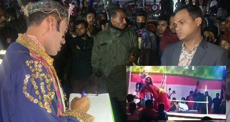 বুধবার (৬ ফেব্রুয়ারি) রাতে উপজেলার সহকারী কমিশনার (ভূমি) অমিত দত্ত এ ভ্রাম্যমান আদালত পরিচালনা করেন। মোবাইল কোর্ট ঘটনাস্থলে গিয়ে যাত্রা অনুষ্ঠান বন্ধ করে আয়োজক কমিটিকে ৫০ হাজার টাকার অর্থদণ্ড প্রদান করেন এবং অনুষ্ঠান বন্ধ করে দেন।