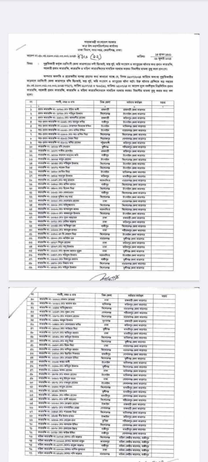 নরসিংদী: নরসিংদী জেলা কারাগারে হামলা-ভাঙচুর ও অগ্নিসংযোগের সময় দায়িত্বে নিয়োজিত ৬৬ জন কারারক্ষী এবং অন্যান্য পদের ১০ জনসহ মোট ৭৭ জনকে বরখাস্ত করা হয়েছে। এর আগে দায়িত্বে অবহেলার দায়ে জেল সুপার আবুল কালাম আজাদ এবং জেলার কামরুল ইসলামকেও বরখাস্ত করা হয়। পাশাপাশি সকলের বিরুদ্ধে বিভাগীয় মামলাও দায়ের করা হয়েছে।