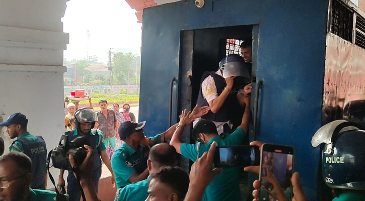 খুলনা: খুলনায় সাবেক ভূমি মন্ত্রী নারায়ণ চন্দ্র চন্দকে আদালত চত্বরে ডিম নিক্ষেপ করেছে বৈষম্যবিরোধী ছাত্র আন্দোলনের নেতাকর্মী ও ক্ষুব্ধ জনতা। বৃহস্পতিবার (১৪ নভেম্বর) দুপুর পৌনে ১টার দিকে নারায়ণ চন্দ্র চন্দকে খুলনা মেট্রোপলিটন ম্যাজিস্ট্রেট আদালত-১ এ নিয়ে আসা হয়। এ সময়ে তাকে প্রিজন ভ্যান থেকে নামানোর সময় ডিম নিক্ষেপের এই ঘটনা ঘটে। কয়েকটি ডিম তার গায়ে লেগে জামা নষ্ট হয়ে যায়। তখন পুলিশ ব্যারিকেড দিয়ে তাকে এজলাসের ভেতর নিয়ে যান।