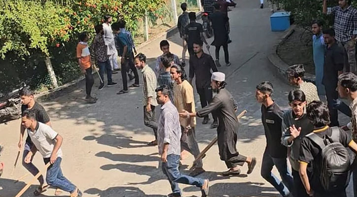 তিনি বলেন, আমাদের কেন্দ্রীয় এবং বিভাগীয় সমন্বয়কদের ছবি পুড়িয়েছে ও হুমকি দিয়েছে। আমরা থানায় জিডি করেছি। আজ তারা আমাদের অনুষ্ঠানে হামলা চালিয়ে কয়েকজনকে আহত করেছে। আমরা এই বিচার না পাওয়া পর্যন্ত এখান থেকে যাব না।