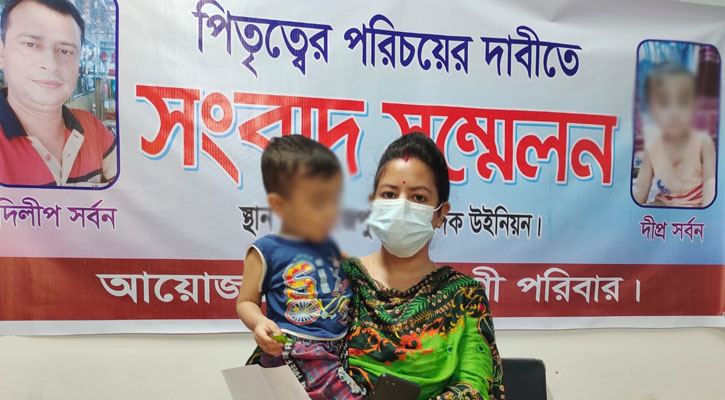 পিরোজপুর: সন্তানের পিতৃ পরিচয়ের দাবিতে দুই বছরের শিশু সন্তানকে সাথে নিয়ে পিরোজপুরে সংবাদ সম্মেলন করেছেন এক নারী। বৃহস্পতিবার (১৪ নভেম্বর) দুপুরে পিরোজপুর সাংবাদিক ইউনিয়নের কার্যলয়ে লিখিত সংবাদ পাঠ করেন মুক্তা রানী হাওলাদার নামের ওই নারী। মুক্তা হাওলাদার পিরোজপুর সদর উপজেলার মাছিমপুর গ্রামের মৃত হীরন চন্দ্র হাওলাদারের মেয়ে।