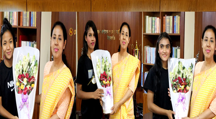 বুধবার (২০ নভেম্বর) সকালে জেলা প্রশাসক ইশরাত ফারজানা নিজ কার্যালয়ে ওই তিনজন নারী ফুটবলারকে ফুলেল শুভেচ্ছা জানান। এর আগে সকালে ঢাকা থেকে নিজ এলাকায় এসেছেন নারী ফুটবলাররা।