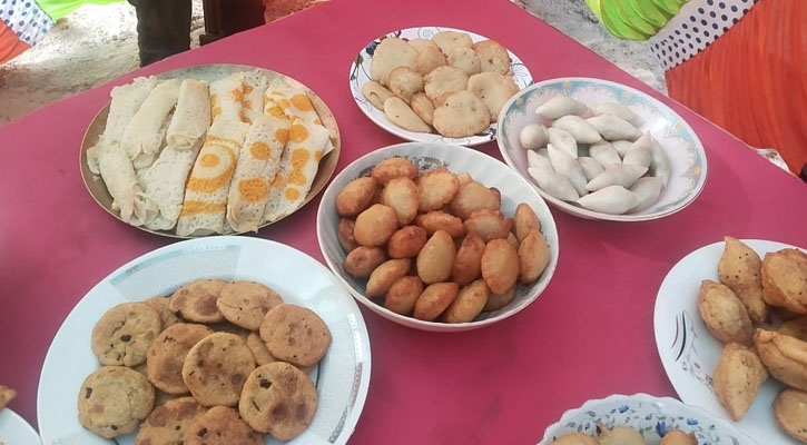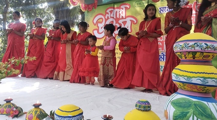 নড়াইল: নড়াইল সদর উপজেলার ধোপাখোলা এলাকার শিশু বিকাশ ও সাংস্কৃতিক চর্চা কেন্দ্র নন্দনকাননে নবান্ন উৎসব অনুষ্ঠিত হয়েছে৷ শুক্রবার (১৩ ডিসেম্বর) দিনব্যাপী এ অনুষ্ঠান শুরু হয়। সেখানে নতুন ধানের চাল দিয়ে হরেক রকম পিঠা তৈরি করে আনেন গ্রামীণ নারীরা। গ্রাম বাংলার অন্তত ২৫ পদের পিঠা হাজির করা হয় প্রাচীন ও ঐতিহ্যবাহী এই নবান্ন উৎসবে। নকশী, দুধ পুলি, দুধ চিতই, চিতই, রসপাকান, ফুলুরি, সবজি, রসপাকান ও ডাল-ঝালের তৈরি অন্তত ২৫ পদের দেশী পিঠা সাজিয়ে রাখা হয় টেবিলে। দিনব্যাপী চলে পিঠা খাওয়ার ধুম, গ্রামীণ লোকনৃত্য ও সাংস্কৃতিক অনুষ্ঠান।