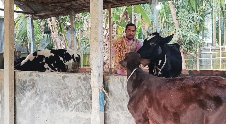 কুড়িগ্রাম: চাকরির পেছনে না ছুটে উদ্যোক্তা হওয়ার স্বপ্ন নিয়ে ২০১৫ সালে রংপুর যুব উন্নয়ন প্রশিক্ষণ কেন্দ্র থেকে গবাদি পশু, হাঁস-মুরগি পালন, প্রাথমিক চিকিৎসা, মৎস্য চাষ ও কৃষি বিষয়ের উপরে তিন মাসের ট্রেনিং নেন বাবলু খন্দকার বাবু। কুড়িগ্রামের ফুলবাড়ী উপজেলার তালুক শিমুল বাড়ির এই যুবক শুরুতেই যুব উন্নয়ন থেকে ৫০ হাজার টাকা ঋণ নিয়ে এবং জমাকৃত টাকাসহ এক লাখ ২৯ হাজার টাকা দিয়ে একটি গাভীসহ ষাঁড় বাছুর ক্রয় করেন।