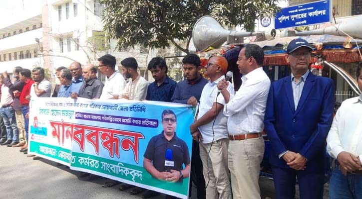 সোমবার (১৭ ফেব্রুয়ারি) দুপুরে পুলিশ সুপার কার্যালয়ের সামনে আয়োজিত মানববন্ধনে মামলা থেকে ওই সাংবাদিকের নাম প্রত্যাহারে ৪৮ ঘন্টার আলটিমেটাম দেন তারা।
