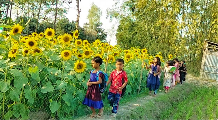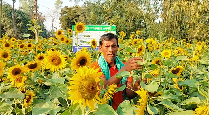 কুড়িগাম: সূর্যমুখী চাষে সফলতার স্বপ্ন দেখছেন ধরলা নদীবেষ্টিত কুড়িগ্রামের ফুলবাড়ী উপজেলার কৃষকরা। ক্ষেতগুলোতে পর্যাপ্ত পরিমাণে ফুল এসেছে। অনুকূল আবহাওয়া ও সঠিক পরিচর্যার কারণে হৃষ্টপুষ্ট ফুলগুলো সৌন্দর্য ছড়াচ্ছে আর কৃষকদের মনে দোলা দিচ্ছে বাম্পার ফলনের সম্ভাবনা।