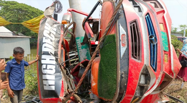 মঙ্গলবার (৮ এপ্রিল) দুপুরের দিকে ফরিদপুর -বরিশাল মহাসড়কের বাখুন্ডা এলাকায় এ দুর্ঘটনা ঘটে।