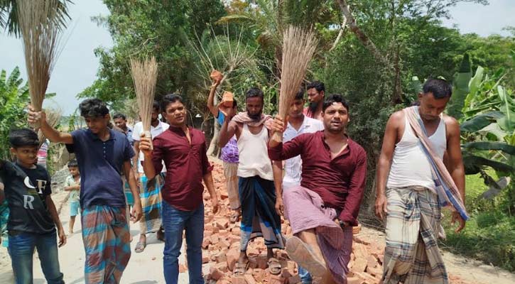 এতে ক্ষুব্ধ হয়ে এলাকাবাসী নিম্মমানের কাজ বন্ধের দাবিতে ঝাড়ু মিছিল দেয় এবং চলমান কাজ বন্ধ করে দেয়।