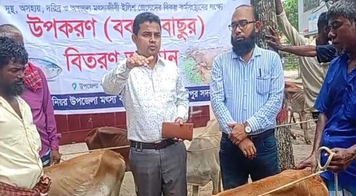 মৎস্য বিভাগ সূত্র জানায়, ইলিশ সম্পদ উন্নয়ন ও ব্যবস্থাপনা প্রকল্পের আওতায় সদর উপজেলা মৎস্য বিভাগের সহায়তায় ১৬ জন দুস্থ মৎস্যজীবীর মধ্যে বকনা বাছুর বিতরণের উদ্যোগ নেওয়া হয়। চট্টগ্রামের আবদুর রহিম এগ্রো অ্যান্ড ফিশারিজ নামের একটি ঠিকাদারি প্রতিষ্ঠান বাছুরগুলো ক্রয়ের দায়িত্ব পায়। বৃহস্পতিবার সদর উপজেলা পরিষদের সামনে ইউএনও জামশেদ আলম রানা বাছুরগুলো বিতরণের কার্যক্রম উদ্বোধন করেন।