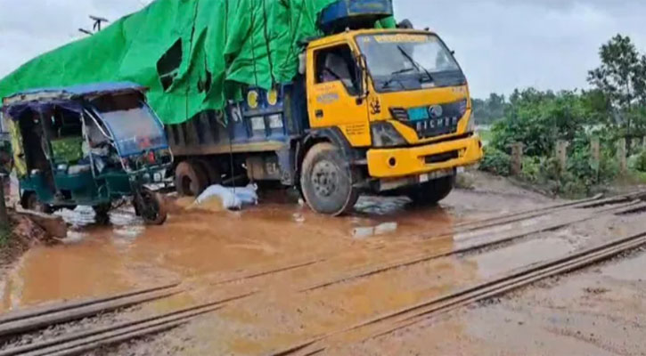 এলাকাবাসী ও রেলওয়ে সূত্রে জানা গেছে, সোমবার সকালে সোনাখালি রেলক্রসিং পার হওয়ার সময় একটি ট্রাক আটকে যায়৷ চালক স্থানীয়দের সহায়তায় চেষ্টা করেও ট্রাকটি সরাতে পারেনি। রেলক্রসিংয়ের সামনে কয়েকটি বড় বড় গর্তের সৃষ্টি হয়েছে। ওই গর্তেই ট্রাকটি আটকে গেছে৷