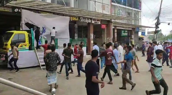 ট্রাকের ওপর মঞ্চটি করা হয়েছিল। শনিবার (১৯ জুলাই) বিকেল পৌনে চারটার দিকে এ ঘটনা ঘটে। পরে সেনাবাহিনী ও পুলিশ গিয়ে তাদের ছত্রভঙ্গ করে।