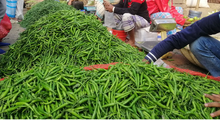 তারা আরো জানান, গত সপ্তাহে হাইব্রিড জাতের কাঁচামরিচের কেজি ছিল ৭০ থেকে ৮০ টাকা। আর কারেন্ট নামে পরিচিত কাঁচামরিচের কেজি বিক্রি হয়েছে ১০০ থেকে ১২০ টাকা।