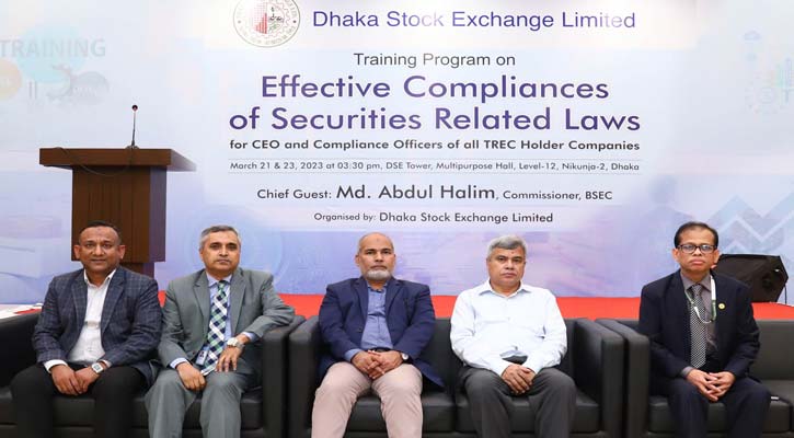 ঢাকা স্টক এক্সচেঞ্জ লিমিটেড কর্তৃক আয়োজিত ডিএসই’র ট্রেকহোল্ডার কোম্পানির সিইও এবং কমপ্লায়েন্স অফিসারদের জন্য ‘Effective Compliance of Securities Related Laws” শীর্ষক দুই দিনব্যাপী (২১ এবং ২৩ মার্চ) সচেতনতামূলক কর্মশালা ডিএসই টাওয়ার, মাল্টিপারপাস হলে অনুষ্ঠিত হয়৷ অনুষ্ঠানে প্রধান অতিথির বক্তব্যে বিএসইসি’র কমিশনার মো. আব্দুল হালিম এসব কথা বলেন।
