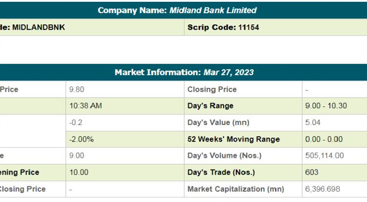 উল্লেখ, মিডল্যান্ড ব্যাংক পুঁজিবাজারে আসার শুরু থেকেই বিনিয়োকারীদের অনাগ্রহের তালিকায় ছিল।ব্যাংকটির প্রাথমিক গণপ্রস্তাবেও (আইপিও) চাহিদার তুলনায় কম আবেদন পড়ে।