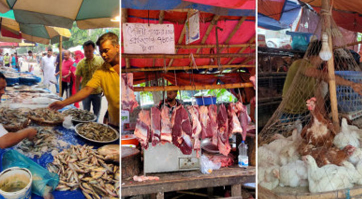 অন্যদিকে মাছের বাজারে পাঙাশ, তেলাপিয়া ছাড়া আর কোনো মাছেই তেমন স্বস্তির খবর পাওয়া যায়নি। বাজারে প্রতি কেজি পাঙাশ ১৭০-১৮০ টাকা, তেলাপিয়া ২০০-২৫০ টাকা, চাষের কৈ ২৫০-২৭০ টাকা, কার্প জাতীয় মাছ ৩০০ টাকা, চাষের শিং ৩৫০-৪০০ টাকা, সাগরের পোয়া ৪০০-৬৫০ টাকা ও বাইলা মাছ বিক্রি হচ্ছে ৬৫০-৭০০ টাকায়।