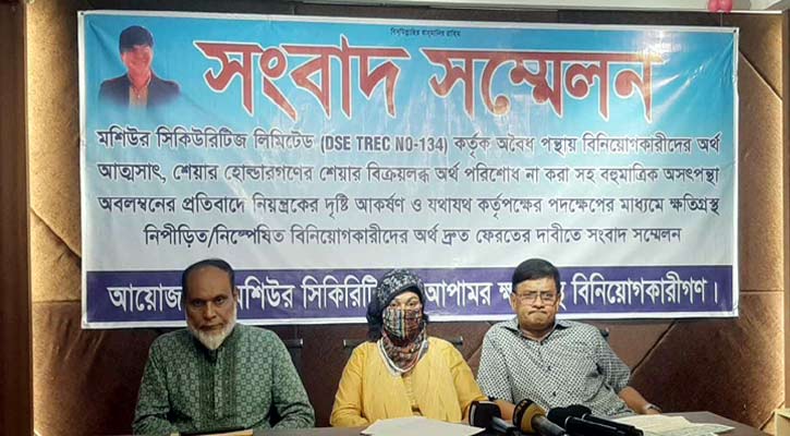 সংবাদ সম্মেলন লিখিত বক্তব্যে বিনিয়োগকারীরা বলেন, আমরা ক্ষতিগ্রস্থ বিনিয়োগকারীগণ এখানে সমবেত হয়েছি মশিউর সিকিউরিটিজ (ডিএসই মেম্বার ১৩৪) এর দুর্নীতির বিষয়ে আপনাদের অবহিত করতে। প্রতিষ্ঠানটি যেভাবে গ্রাহকে ধোকা দিয়েছে তা আমরা এখন পেশ করব।