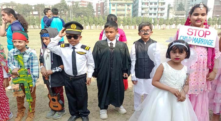 স্কুলের ছোটছোট শোনামনিরা যেমন খুশি তেমন সাজো প্রতিযোগিতায় অংশগ্রহণ করেছে। বঙ্গবন্ধু শেখ মুজিবুর রহমান, মুক্তিযোদ্ধা, পুলিশ, আইনজীবী, পাইলটসহ বিভিন্ন সাজে সেজেছিলো শিশুরা।