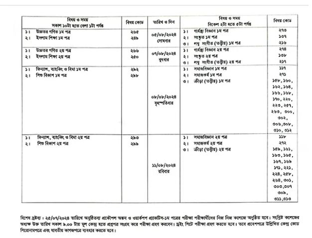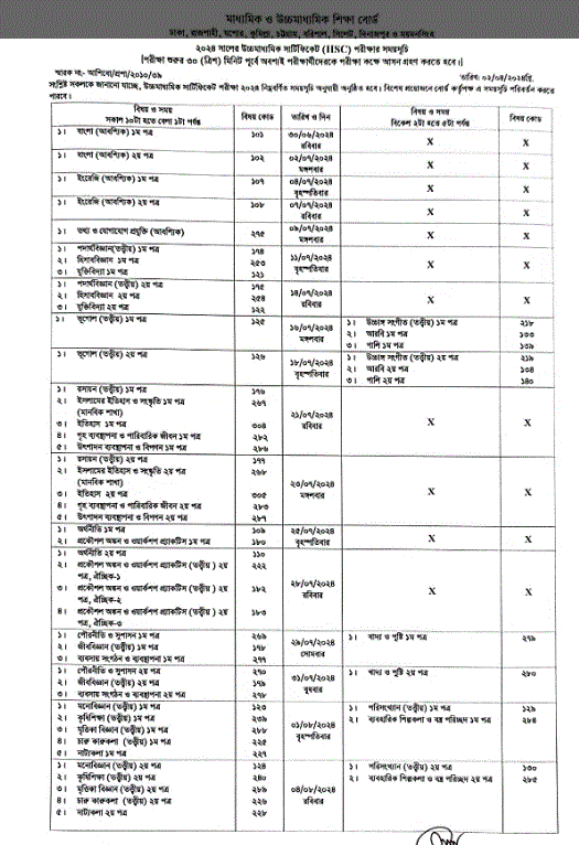 সময়সূচি অনুযায়ী বাংলা (আবশ্যিক) প্রথম পত্রের মাধ্যমে শুরু হবে এই পরীক্ষা। লিখিত পরীক্ষা শেষ হবে ১১ আগস্ট। এরপর ব্যবহারিক পরীক্ষা শুরু হবে।