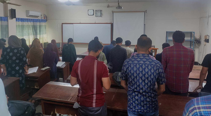 রোববার (১ সেপ্টেম্বর) সকাল ৮টার ক্লাসের শুরুতে বিশ্ববিদ্যালয়ের বিভিন্ন অনুষদের শিক্ষার্থীরা নিজ নিজ শ্রেণীকক্ষে জুলাইয়ের শহীদদের প্রতি শ্রদ্ধা নিবেদন করে এক মিনিট নীরবতা পালন করেন। এসময় শিক্ষকরাও এতে অংশ নেন।