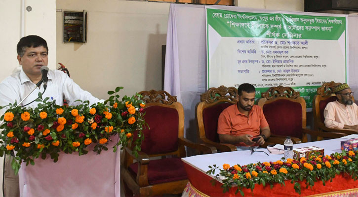 সোমবার (৩০ সেপ্টেম্বর) বিশ্ববিদ্যালয়ের ক্যাফেটেরিয়ায় ‘শিক্ষাঙ্গণে ইতিবাচক সম্পর্ক ও আমাদের ক্যাম্পাস ভাবনা’ শীর্ষক সেমিনারে প্রধান অতিথির বক্তৃতা শিক্ষার্থীসহ সকলের প্রতি এই আহ্বান জানান।