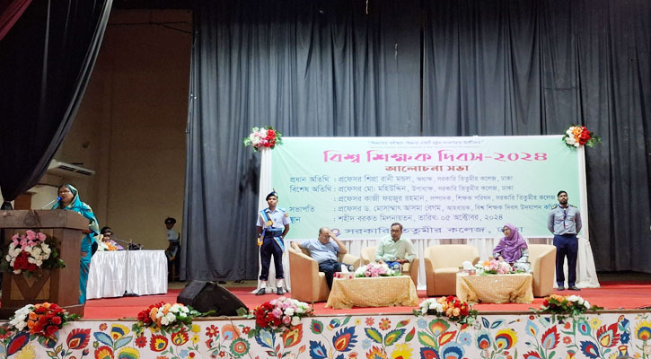 বিশ্ব শিক্ষক দিবসের আলোচনা সভায় কলেজের উপাধ্যক্ষ অধ্যাপক মোঃ মহিউদ্দিন বলেন, আজ ৫ অক্টোবর বিশ্ব শিক্ষক দিবস। শিক্ষকতা একটি মহান পেশা। এই সমাজে অনেক শিক্ষার্থী আসে, তাদের মধ্যে অনেকেই হারিয়ে যায়। তবে কিছু শিক্ষার্থীকে শিক্ষকরা ধরে রাখে। সুতরাং, আমরা যেমন আমাদের পিতা-মাতার ঋণ কখনো শোধ করতে পারি না, তেমনি শিক্ষকদের ঋণও শোধ করার মতো নয়। এছাড়া তিনি আরও বলেন, শিক্ষকদের কিছু ভুলভ্রান্তি আছে, সেগুলো পরিহার করা দরকার।