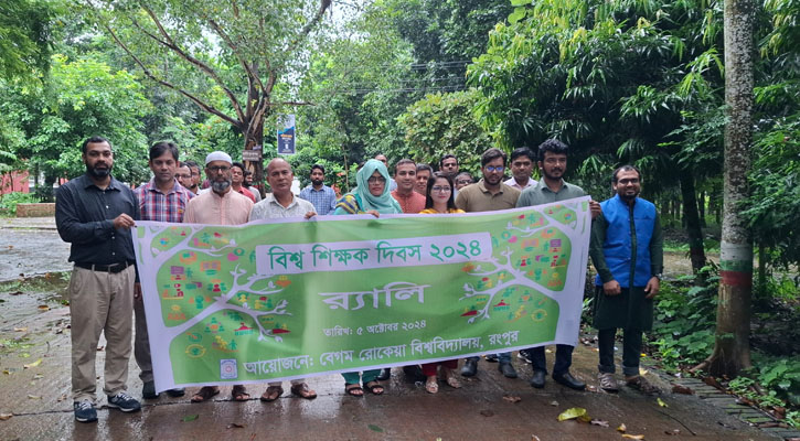 রংপুর: রংপুরের বেগম রোকেয়া বিশ্ববিদ্যালয় (বেরোবি) বিশ্ব শিক্ষক দিবস যথাযথ মর্যাদায় উদযাপন করা হয়েছে। ‘শিক্ষকের কন্ঠস্বর: শিক্ষায় নতুন সামাজিক অঙ্গীকার’ প্রতিপাদ্যকে সামনে রেখে শনিবার (৫ অক্টোবর) সকাল সাড়ে ১১টায় বিশ্ব শিক্ষক দিবস উপলক্ষ্যে এক শোভাযাত্রার আয়োজন করা হয়।