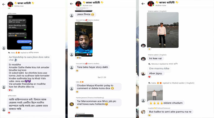 মঙ্গলবার (২১ জানুয়ারি) সরকারি তিতুমীর কলেজের বিভিন্ন ফেসবুক গ্রুপে ভাইরাল হওয়া কিছু স্ক্রিনশটে দেখা গেছে, তিতুমীর কলেজে পড়ুয়া কিছু শিক্ষার্থী "কাকা বাহিনী" নামে এক মেসেঞ্জার গ্রুপ খুলে সেখানে নারী শিক্ষার্থীদের নিয়ে অশ্লীল মন্তব্য এবং সিনিয়র-জুনিয়রদের মারার পরিকল্পনা করছে। এছাড়াও মদের বোতল নিয়ে হাসি-ঠাট্টায় মেতে আছে এবং একে-অপরকে অশ্লীল ডাক নাম নিয়ে অশ্লীল সংলাপ বলে চলছে।