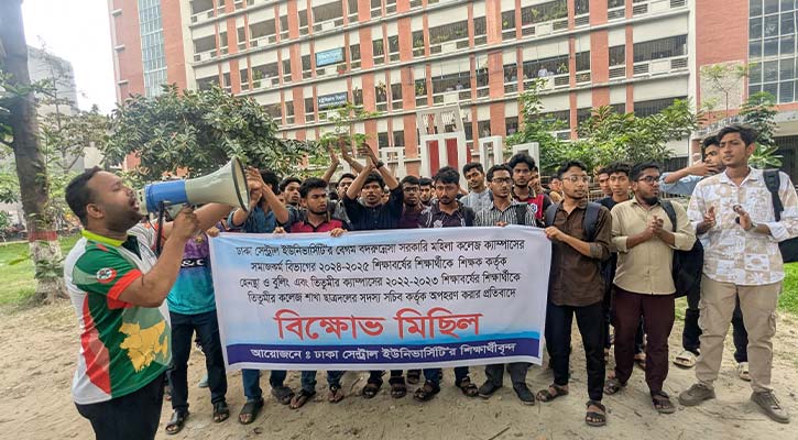 বিশ্ববিদ্যালয় আন্দোলনে সক্রিয়ভাবে অংশগ্রহণের কারণে শিক্ষক কর্তৃক রাজধানীর বেগম বদরুন্নেসা কলেজের এক শিক্ষার্থীকে হেনস্তার প্রতিবাদে বিক্ষোভ মিছিল করেছে ঢাকা সেন্ট্রাল ইউনিভার্সিটির (ঢাকেবি) শিক্ষার্থীরা।