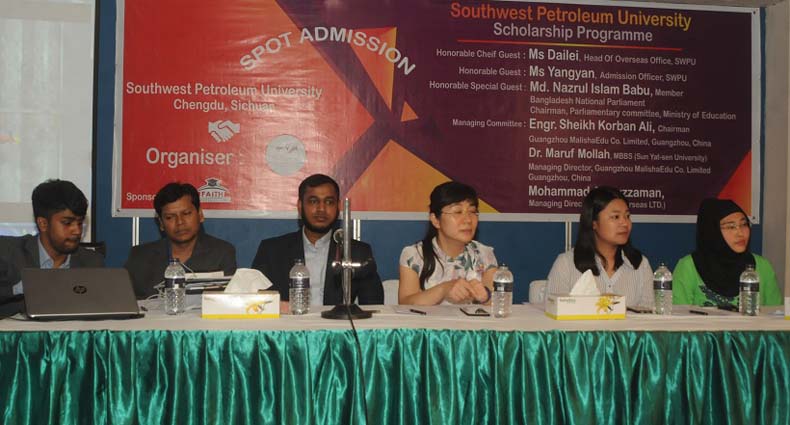 ঢাকা: মালিশাএডু’র সৌজন্যে চীনে প্রতিষ্ঠিত বিশ্ববিদ্যালয়ে স্পট অ্যাডমিশনের সুযোগ দেয়া হযেছে। চীনের সাউথ ওয়েস্ট পেট্রোলিয়াম বিশ্ববিদ্যালয়ের ডিনসহ একটি প্রতিনিধি দল সেদেশের শিক্ষার বিভিন্ন দিক বাংলাদেশের শিক্ষার্থীদের কাছে তুলে ধরেন। এসময় ডিন এবং অ্যাডমিশন অফিসার চীনা শিক্ষাবাবস্থা এবং আবাসিক বাবস্থা সম্পর্কে কথা বলেন।