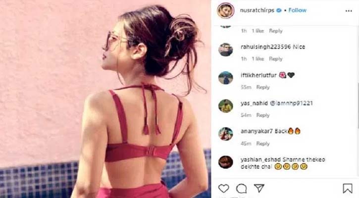এছাড়া চোখে বেঁধার মতো আপত্তিকর মন্তব্যও আছে অনেক। যদিও যার ছবি দেখে নেটপাড়ার পড়শিদের ঘুম উড়েছে, সেই নুসরাতের কিন্তু এসব মন্তব্য নিয়ে একটুও মাথাব্যথা নেই। উল্টো তিনি ছবিতে ফলাও করে ক্যাপশন দিয়েছেন, ‘আমাকে পড়ার চেষ্টা করে লাভ নেই। স্নাতক পাস করতে পারবে না।’