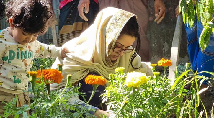 নানার কবরে বেশ কিছু ফুলের গাছ লাগিয়েছেন পরীমনি। সেই গাছে পানি দেওয়া অবস্থায় নিজের উপলব্ধিও প্রকাশ করেছেন তিনি। খুব সহজেই বললেন, ‘এই বাড়ি (কবরকে ইঙ্গিত করে) একদিন আমারও শেষ গন্তব্য হবে!’