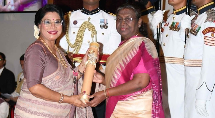 ভারতের রাষ্ট্রপতির হাত থেকে পদ্মশ্রী সম্মাননা গ্রহণ করছেন রেজওয়ানা চৌধুরী বন্যা।