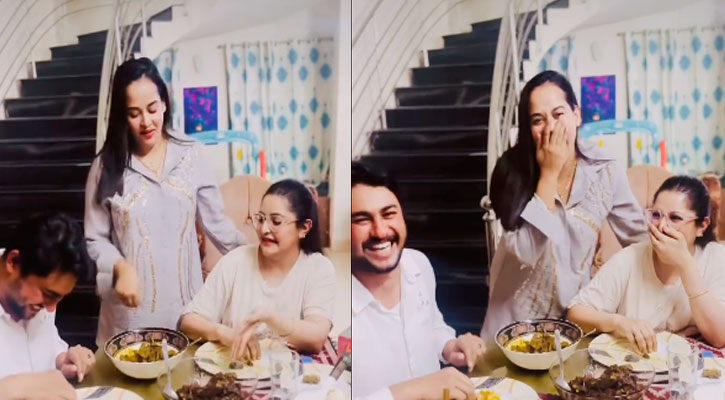টেবিলে নায়ক জয় চৌধুরী ও পরীমনি। জমজমাট খাওয়া-দাওয়ার আসর। নায়িকা নিজের পাত থেকে মাংস তুলে তাকে খাওয়াচ্ছেন— এমনই একটি ভিডিও ভাইরাল হয়েছে সামাজিকমাধ্যমে। সম্ভবত নায়কের বাড়িতে নায়িকার ‘দাওয়াত’। টেবিল উপচে পড়েছে নানা রকম খাবার। নানা স্বাদের মাংসের পদ রান্না হয়েছে। এ ছাড়া মাছসহ অন্য পদও রয়েছে। নায়ক-নায়িকা খেতে বসেছেন।