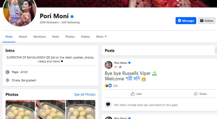 এসব নিয়ে চর্চা যখন তুঙ্গে, ঠিক তখনই সোশ্যাল মিডিয়া ফেসবুক অ্যাকাউন্টে রহস্যময় একটি স্ট্যাটাস দিলেন। মঙ্গলবার দুপুর সোয়া একটায় এক স্ট্যাটাসে পরীমনি লেখেন, ‘বাই বাই রাসেলস ভাইপার। ওয়েলকাম পরীমনি।’ যার বাংলা অর্থ―বিদায় রাসেলস ভাইপার। স্বাগতম পরীমনি।