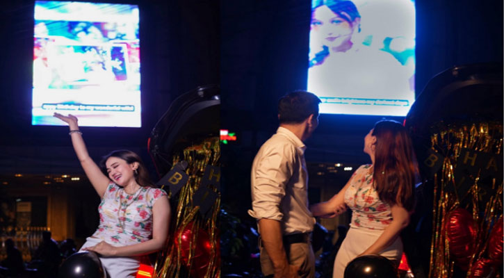 স্বামীর কাছ থেকে এমন সারপ্রাইজ পেয়ে বেশ উচ্ছ্বসিত চমক। সামাজিক যোগাযোগ মাধ্যমে প্রকাশিত বেশ কিছু ছবিতে দেখা মিলল সেই চিত্র। যেখানে বিলবোর্ডে চমকের ছবি ও অভিনেত্রীর সামনে জন্মদিনের কেক দেখা গেছে। এসময় তার স্বামী নাসিরও পাশেই ছিলেন।