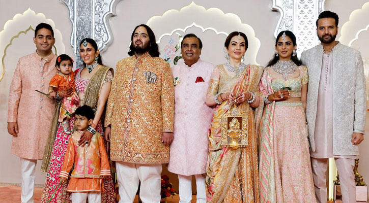ঢাকা: মুম্বাইয়ের কুরলা কমপ্লেক্সের জিও ওয়ার্ল্ড কনভেনশন সেন্টারে গত ১২ জুলাই অনুষ্ঠিত হলো ভারতীয় ধনকুবের মুকেশ আম্বানীর ছেলে অনন্ত আম্বানী ও রাধিকা মার্চেন্টের বিয়ে। যেখানে উপস্থিত ছিলেন বলিউড-হলিউড থেকে শুরু করে খেলোয়াড়-ধনকুবেররা।