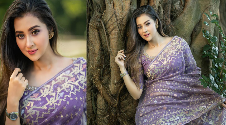 এবারও তার ব্যতিক্রম হলো না। হালকা পার্পেল রঙের শাড়িতে মুগ্ধতা ছড়ালেন নেটদুনিয়ায়।
