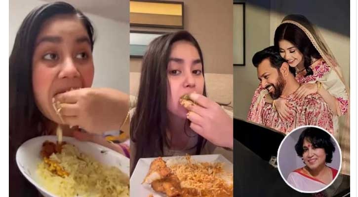 এ নিয়ে রোববার (১৬ জানুয়ারি) নিজের ফেসবুক অ্যাকাউন্টে তিনি লিখেছেন, ‘কী মুশকিল, ফেসবুক অন করলেই দেখি তাহসানের নতুন বউ রোজা বিরাট বড় বড় হাঁ করে ভাত খাচ্ছে। মুখের ভেতর হাত দিয়ে ভাত ঢোকাচ্ছে। ঢোকাচ্ছে তো ঢোকাচ্ছেই। এত ভাত খেলে আমার ওজন ২০০ কিলো হয়ে যেত। ভাগ্যবতীদের অবশ্য শত খেলেও ওজন বাড়ে না। কিন্তু ভাত খাওয়া রিলগুলো যেন চোখের সামনে বার বার না আসে, সেটার জন্য কী করতে পারি, পরামর্শ চাই।’