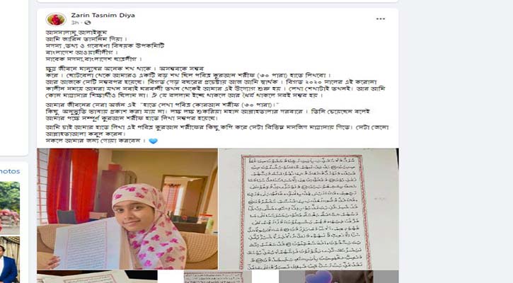 পবিত্র কোরআন হাতে লিখলেন সাবেক ছাত্রলীগ নেত্রী
