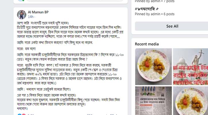 স্যারের কথা শুনে বুঝলাম, সরকারি চাকুরিজীবীরা কিছু পেতে যাচ্ছেন। সবাই নিজ নিজ যায়গা থেকে দোয়া করুন আর আন্দলোন অব্যাহত রাখুন।